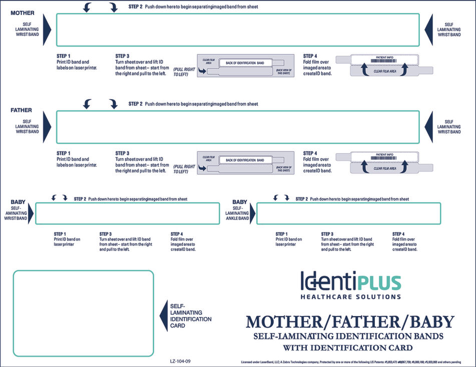 Identiplus laser wristbands allow healthcare professionals to simultaneously print patient wristbands and chart labels. This latex-free wristband easily accepts barcodes and variable data, employs a self-laminating seal to protect patient information, and are tear resistant with a tamper evident closure.